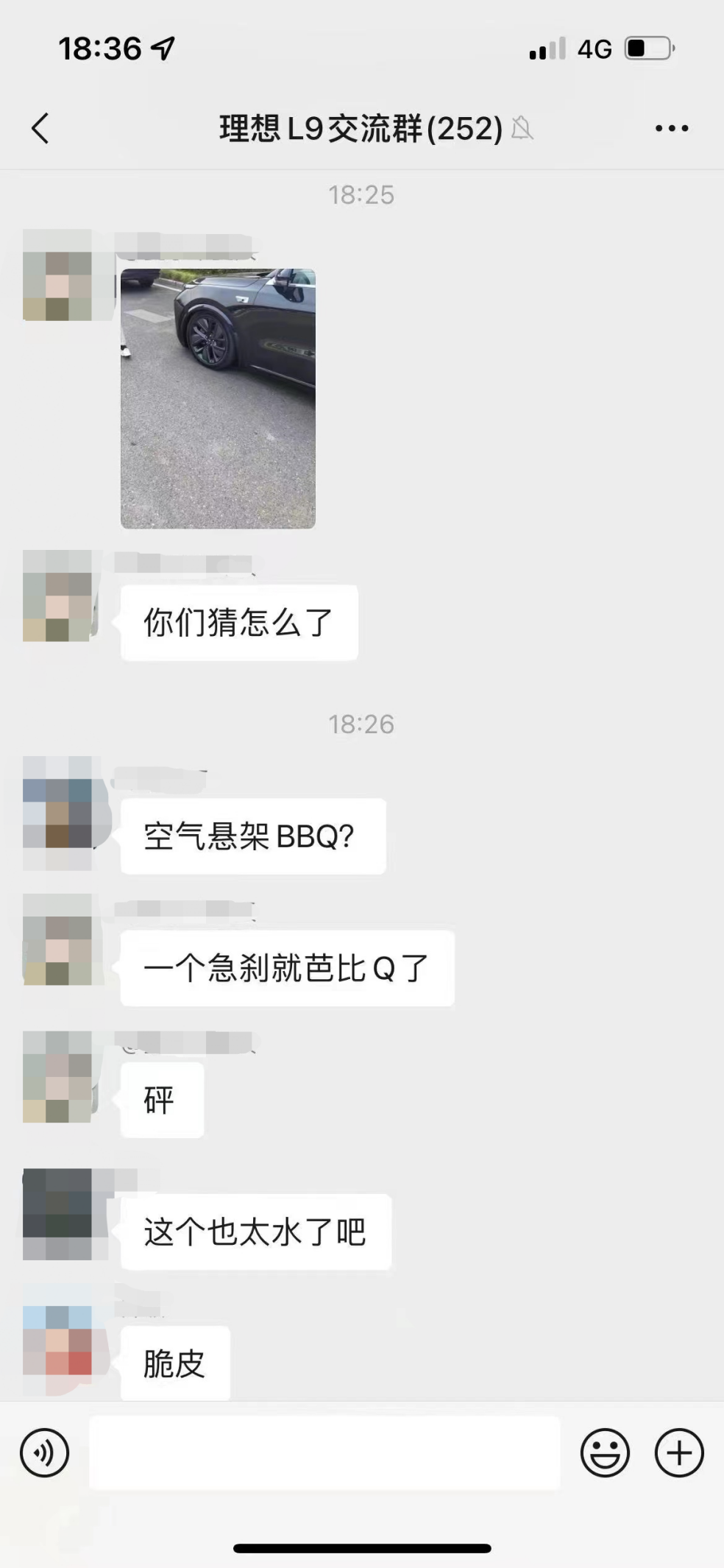 推测是车辆的空气悬挂系统出现了问题。用户车辆尚未正式交付。在乘客人数或座位位置变化时,这套悬挂系统旨在提升在多种路况下的乘坐舒适性。车辆的左前轮明显嵌入车身,主要内容是详述了理想L9全自主研发自适应空气悬架系统的特点。