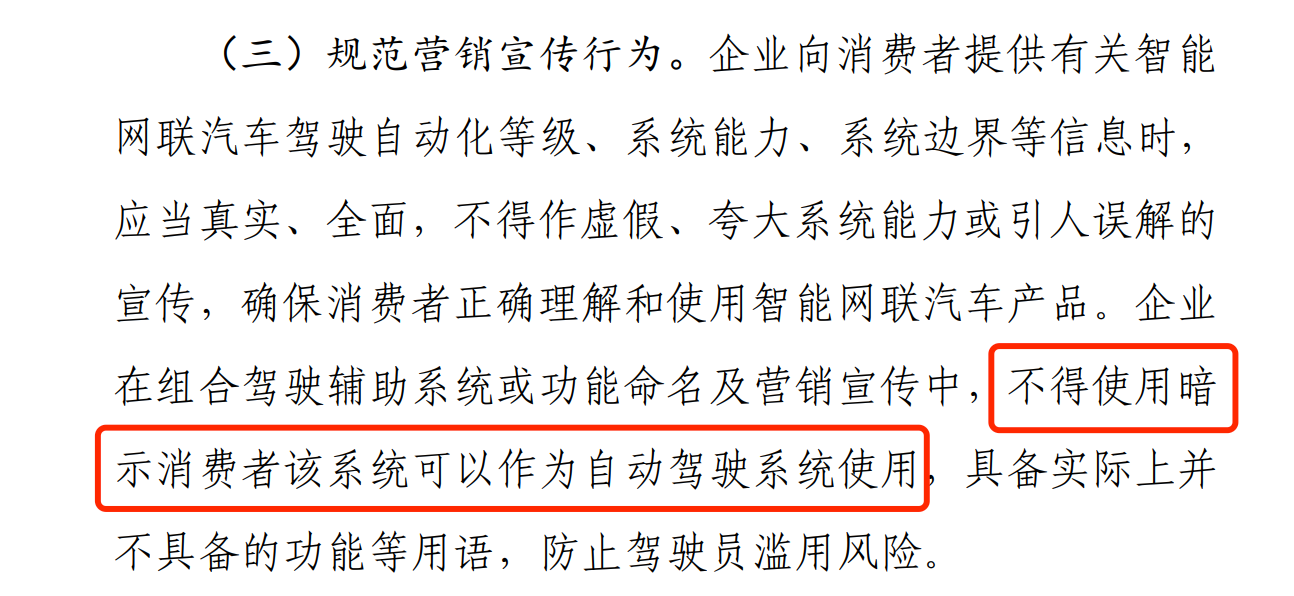 企业应避免在组合驾驶辅助系统的命名和营销宣传中使用可能误导消费者的描述,去除了“智能”和“智驾”等字样。特别是那些暗示这些系统具有自动驾駛功能但实际上不具有的功能。但为了提高用户对辅助驾驶功能边界的认识,行业正在推动宣传口径的规范化。