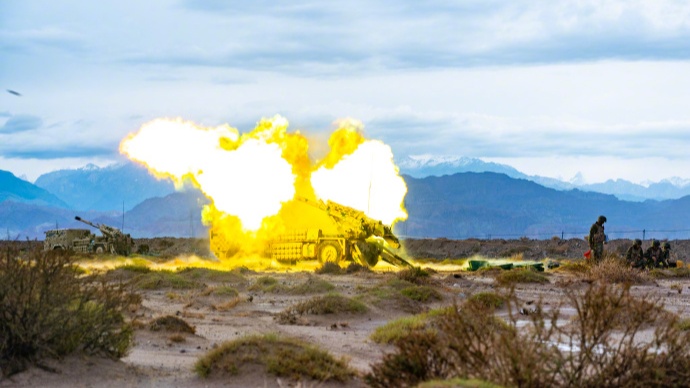 在广袤的考核大漠戈壁中,进行实战射击考核,榴炮