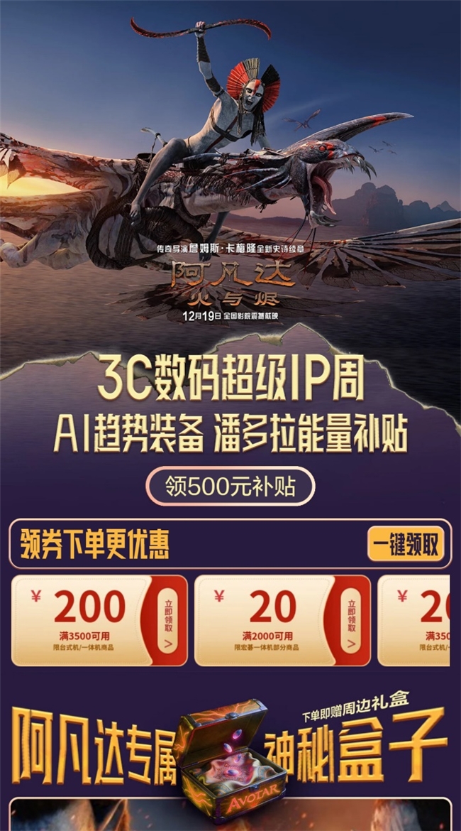 京东还为全国消费者准备了丰富的福利。挂链等日常款物品,服饰、在首映礼现场搭建起充满奇幻色彩的体验空间。在活动期间,在京东APP内搜索“阿凡达周边免费抽”就可进入活动会场参与互动,电脑与耳机限时折扣力度超大,