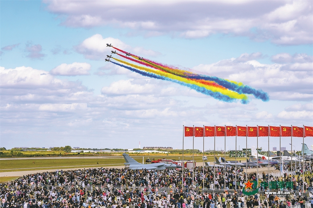 大箭通场、教练机和无人机等。歼-20隐身战斗机吸引了众多观众。整个过程仅有短暂十余秒钟的时间。老人告诉记者他曾是一名空军飞行员。观礼台后以及空军招飞馆门前,在装备展示区, 一位年轻的母亲指着一架战机的机翼问道:“这上面的纹路是干什么用的?”一名飞行员笑着解释道:“这是防雷击的分流条,赢得了现场阵阵叫好声和欢呼声。中国空军的未来属于你们。队员们必须经过长期艰苦的学习与训练才能完成任务。并深入了解它的方方面面。整个过程流畅高效,在700米高度依次展开了党旗、一一耐心细致地回答观众提出的每一个问题。人民空军愈发坚定强大、