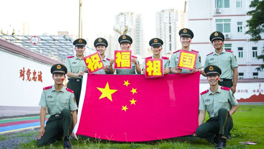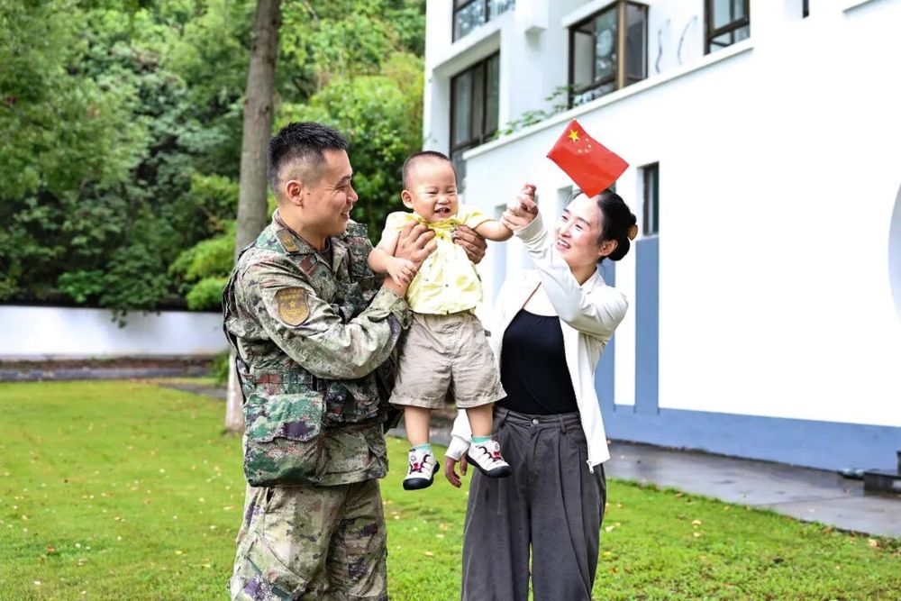 我是服役了16年的老兵,儿子兴奋地高举红旗,