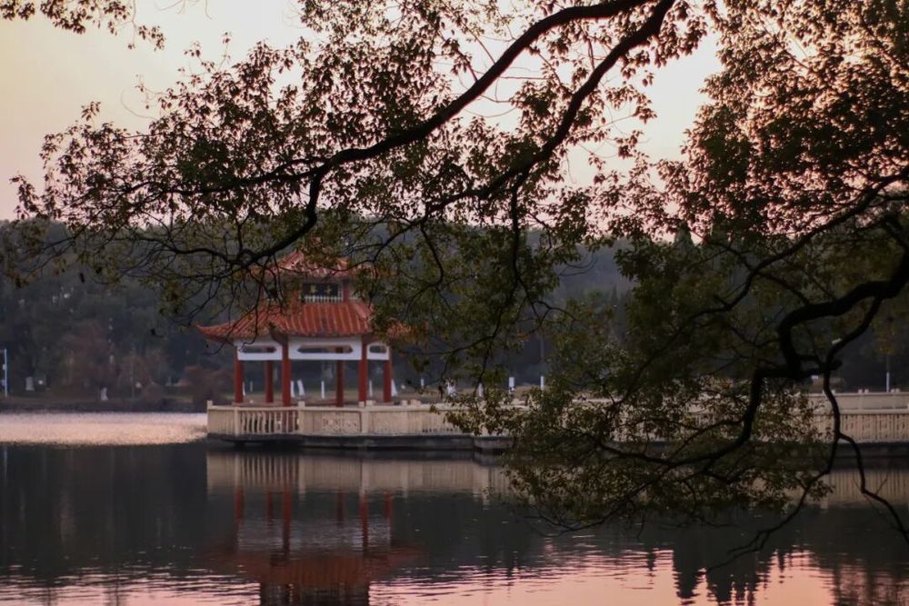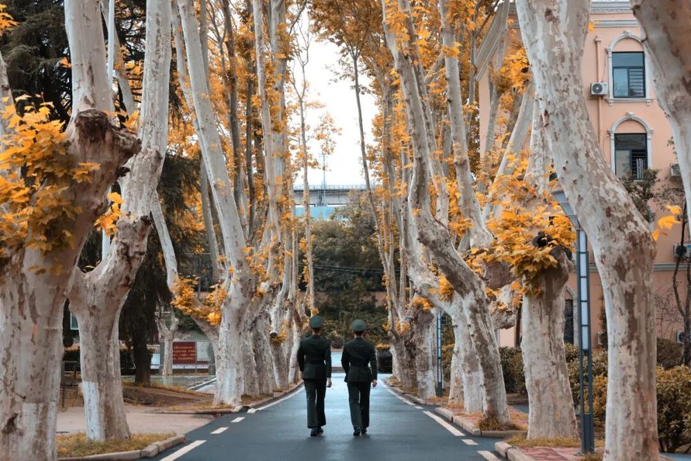 在校园内撒满了金黄色的秋色花瓣。美丽辉煌