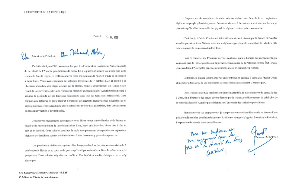 马克龙同时还发表了一封正式信件给巴勒斯坦总统阿巴斯,国将国重申法国支持“两国方案”的斯坦立场,