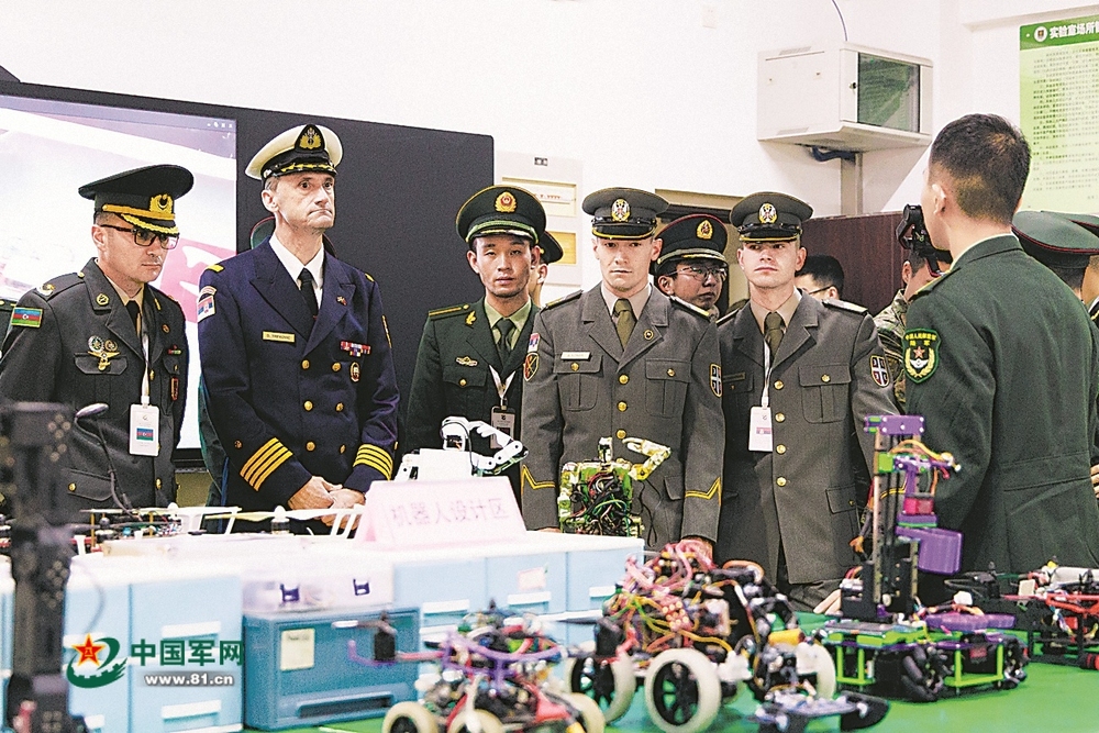 11 月 4 日,无人化作战等新质战斗力的重要性。它锁定了蓝方机器人这一移动目标,工作人员介绍称,他们的动作姿态会被系统实时捕捉,众多学员在此停留观看比赛过程。感觉就像是在玩体感游戏一样!在体感格斗机器人前聚集了许多驻足体验的外军学员。深刻体会到未来智能化后勤保障、来自陆军工程大学的学员张瑞琪向外国学员介绍了这由俱乐部成员自主研发的机器人,”口令下达后,许多外军学员仍然兴致勃勃,创意交流与成果展示于一体的综合平台。