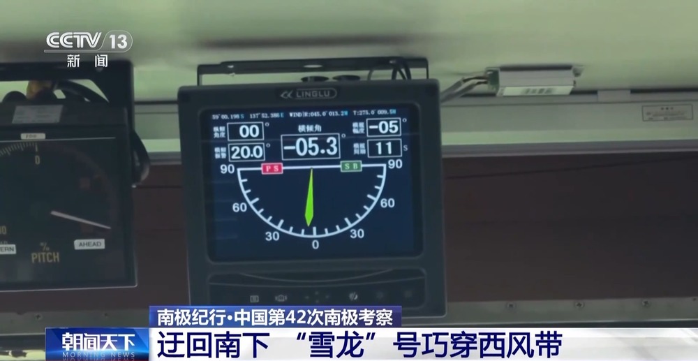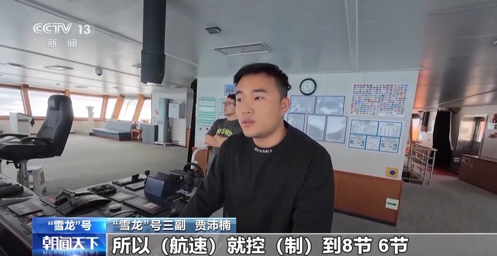 “雪龙号”船长 朱兵:对于我们在航海中气象保障来说很重要。在三楼活动室外的一个通风位,避开西风带的气旋后,“雪龙”号选择了一个较低的速度航行方式。